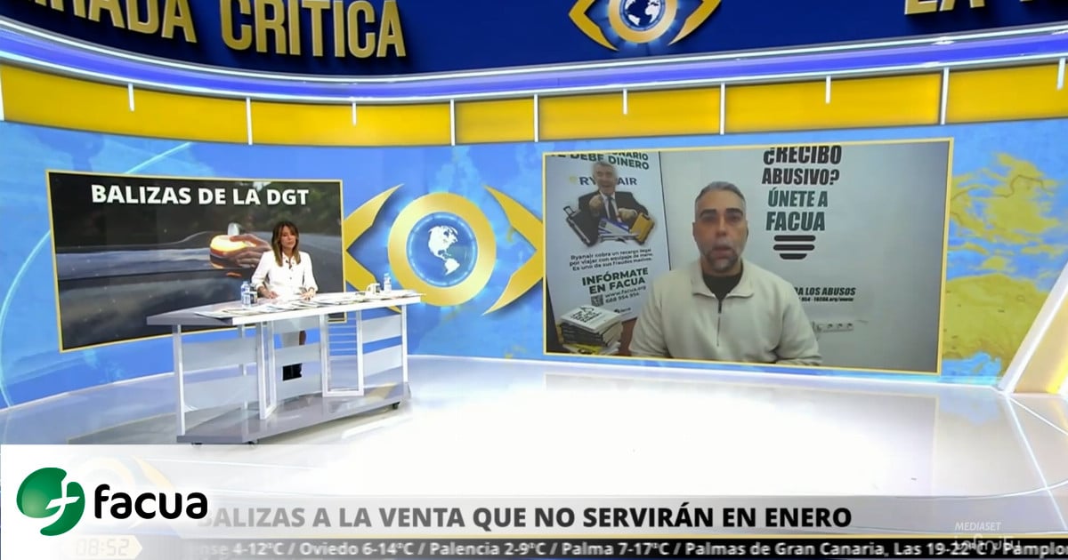 El secretario general de FACUA-Consumidores en Acción, Rubén Sánchez, ha intervenido este martes 2 de diciembre en el programa La Mirada Crítica, de Telecinco, para hablar sobre el caos de las balizas V16.
